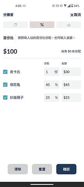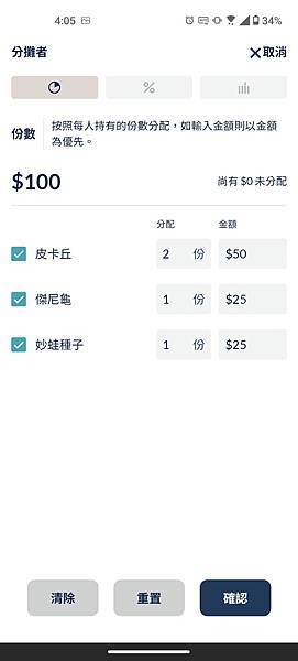 分攤的情境就比較多元,除了均分之外,還有其他可能會發生的狀況,這裡提供多元的分攤方式,非常方便!舉一些情境: