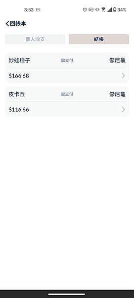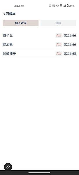 個人收支會按照成員列出個別分攤後的花費,對於自己有記帳習慣的朋友非常友善,不會因為混著出錢而不知道自己的支出