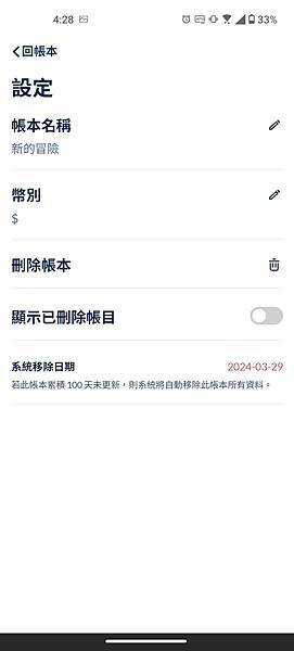 - 當 100 天沒有任何的新紀錄,系統會徹底刪除帳本的所有資料,這個動作無法主動進行